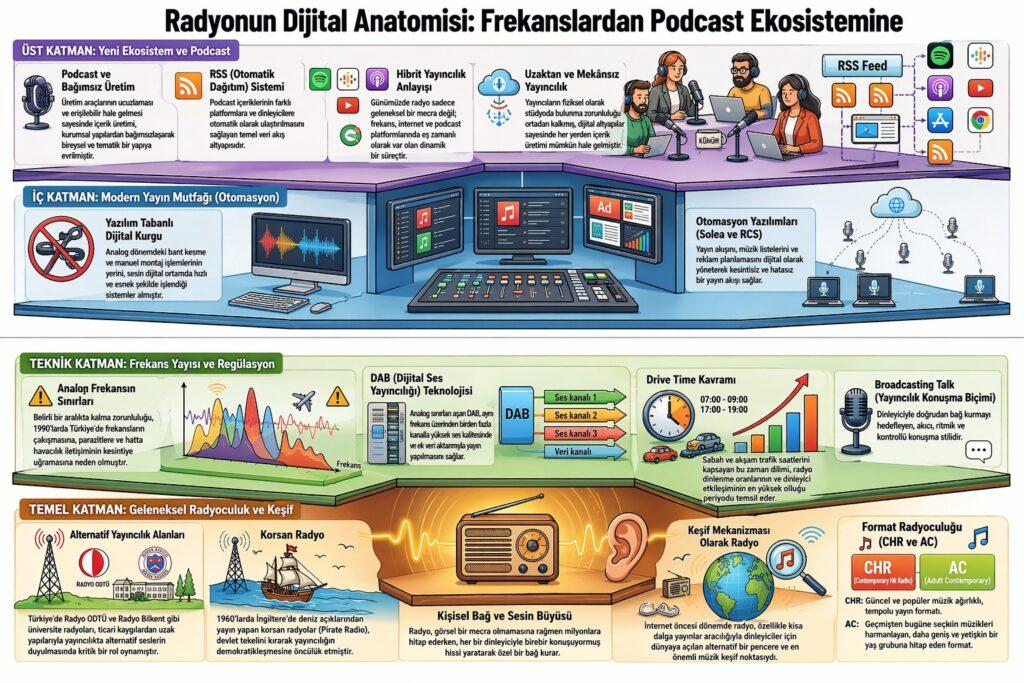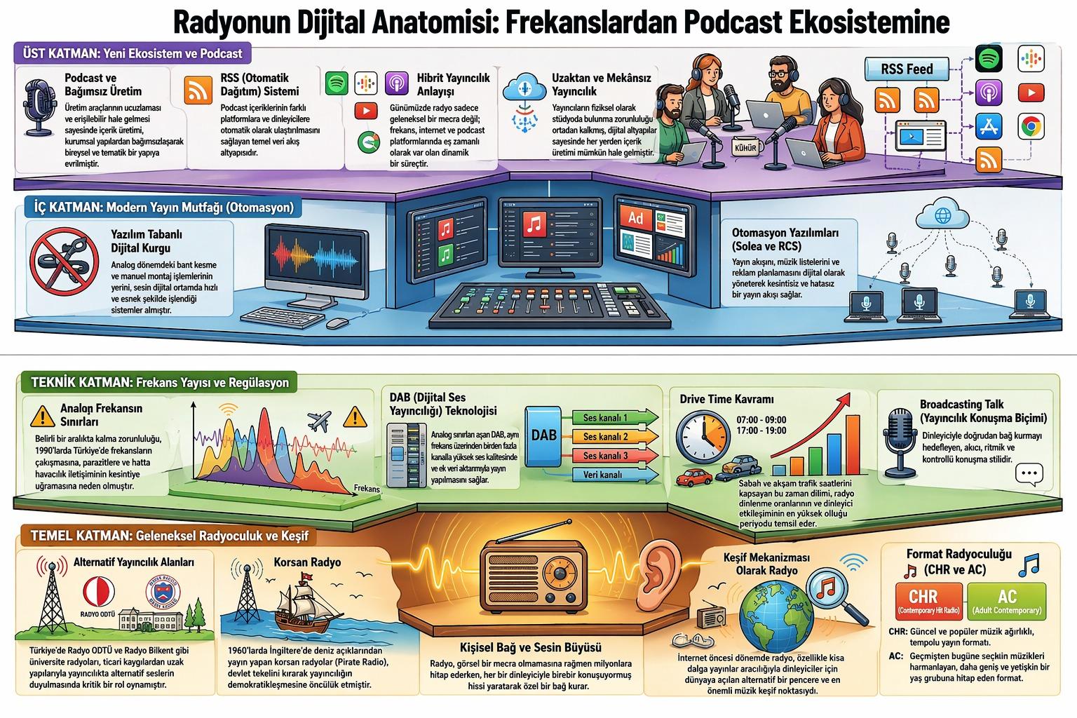 Bugün radyo, podcast ve dijital platformlar birbirini dışlayan değil, birbirini tamamlayan yapılar olarak birlikte var olmaktadır.